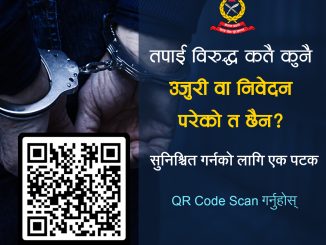 १८ चैत्र, काठमाण्डौँ । तपाई विरुद्ध कतै कुनै उजुरी वा निवेदन परेको त छैन ?सुनिश्चित गर्नको लागि एक पटक QR Code Scan गर्नुहोस् । https://www.facebook.com/photo?fbid=1259065716355949&set=a.182869150642283